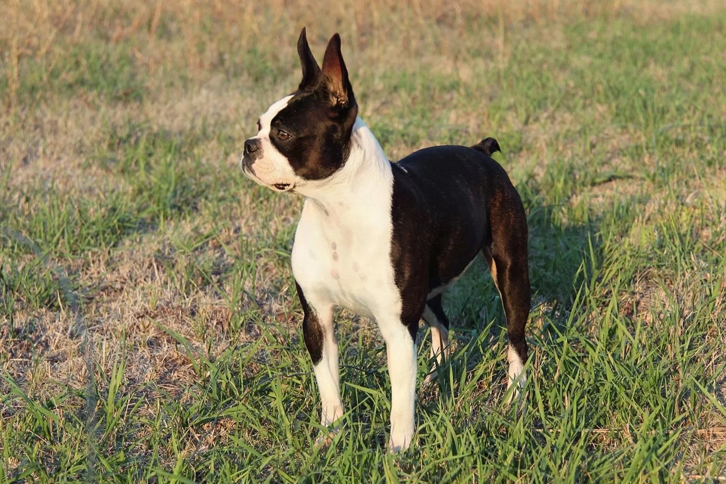 Our Boston Terriers are family-oriented, great with children, and play well together. We prioritize specific traits, with a good temperament and steady demeanor being essential. Hiking and exploring the outdoors are activities we love to share with them. All of our dogs are AKC registered, each with a unique personality, and they are truly part of the family!