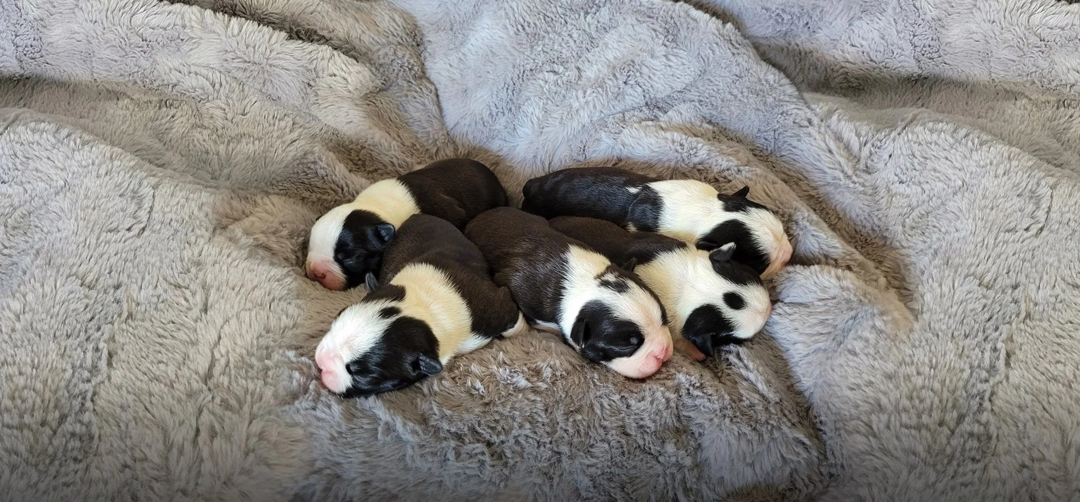 We breed exceptional family dogs, carefully selecting for desirable breed characteristics. Our goal is to provide our puppies with the best start in life, beginning with healthy, happy, and active parents. From birth, we engage daily with our puppies, familiarizing them with our touch and scent. Around three weeks of age we focus on socializing them with family, friends, and our other dogs.